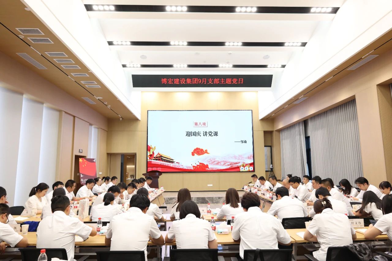 憶往昔百年崢嶸歲月,展未來吾輩任重道遠。為進一步加深黨員的愛國熱情,迎接即將到來的第74個國慶節,9月22日下午16:00,博宏建設集團舉辦了主題為“踔厲奮發強國防,不忘初心迎國慶”的9月聯合支部主題黨日活動,博宏建設集團第一、二黨支部全體黨員參與活動。